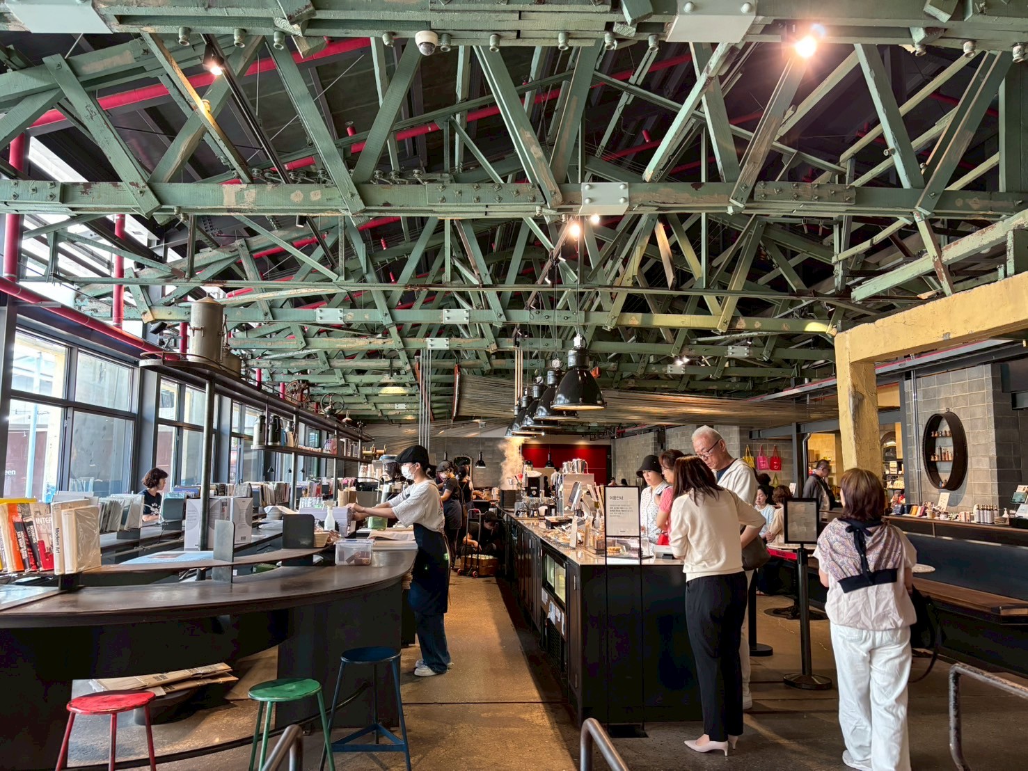 西面エリアのTerarosa Coffeeは、工業的な内装が特徴だ。高い天井の鉄骨構造と黒い照明が独特の雰囲気を醸し出し、巨大なアンティーク焙煎機が王座のように鎮座する。吊り下げられた金属の細線が空間を優雅に仕切り、アートギャラリーのような趣を添える。 カウンターでは、スタッフが丁寧にコーヒーを淹れる。注文した深煎りブレンドは、豊かな香りとコク深い味わいにほのかな甘みが広がる。窓辺の席でカップを手に街並みを眺めると、赤いソファや木製テーブルが配置された空間が、静かな会話に最適な場を提供している。街の音とコーヒーの香りが調和し、釜山の日常を切り取ったひとときが流れる。午後の陽光がガラス窓を照らす中、このカフェは工業的なデザインとスペシャルティコーヒーのクオリティが融合した、釜山のコーヒー文化の重要な一翼を担う存在だ。 |