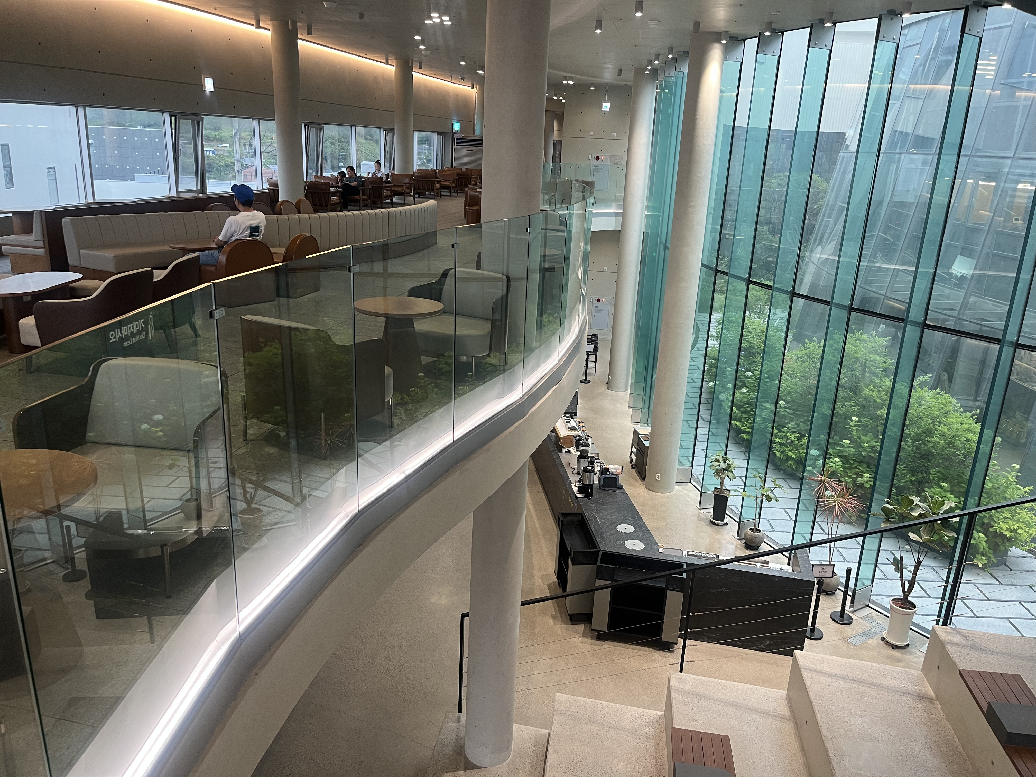 窓辺に座り、緑の庭園を眺める。外の自然と内装のモダンさが共存するこの場所は、静かに思索にふけるのに最適だ。カフェは単なる飲食の場を超え、社交と休息の聖域となっている。遠くに聞こえる街の音が、静寂の中でかすかに響き、釜山の多様な顔を垣間見せる。 |