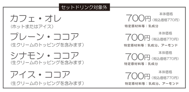 ドリンクセット【本体価格:730円】(税込価格:803円)