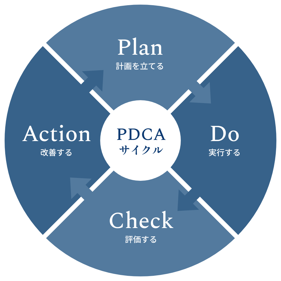 ものづくりのすべての場面で品質マネジメントシステム(QMS:Quality Management System)を構築・運用します。QMSの運用にあたってはPDCAサイクル(計画?実行?評価?改善)をすべての業務の必須事項として、進捗を定期的に検証、より良い品質の実現を目指して継続改善改善を図っています。
