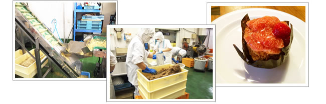 マルヤ工場では、食材の仕入れから加工までの流れを、スイーツワークスでは、工房内で実際の作業スペースを見学しました。