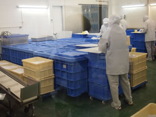 『 株式会社ナカリ 』はケーキ工房が材料(和栗)仕入を行っている業者で、収穫した栗がどのように加工されているかを見学させてもらいました。