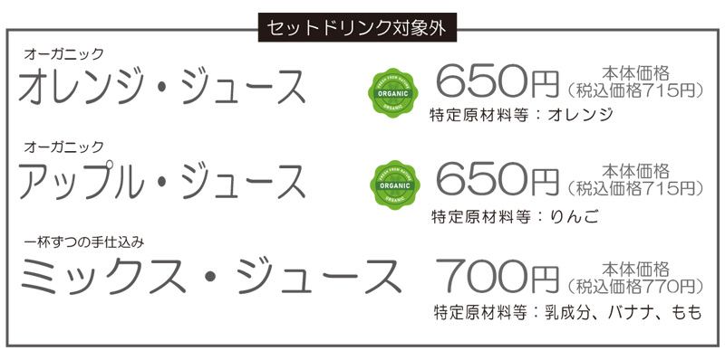 ドリンクセット【本体価格:730円】(税込価格:803円)